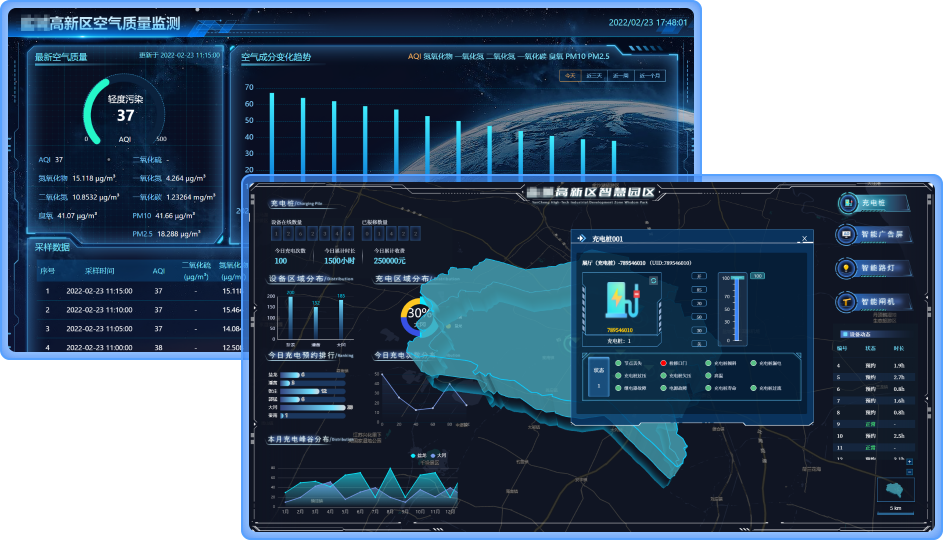 基于物理传感器接入设备数据 并将解析的数据呈现大屏 实时展示物联数据。